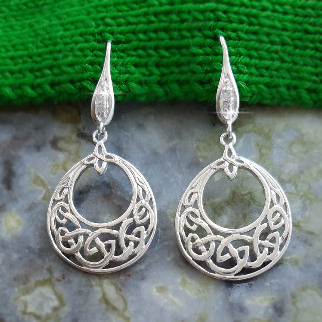 Experience the stunning beauty of our Sterling Silver Large Drop Celtic Open Circle Cz Hooks! These exquisite earrings effortlessly blend traditional Celtic design with sparkling CZ stones, creating a piece that is truly one-of-a-kind. Elevate any outfit with these captivating hooks and embrace the Celtic spirit in style.