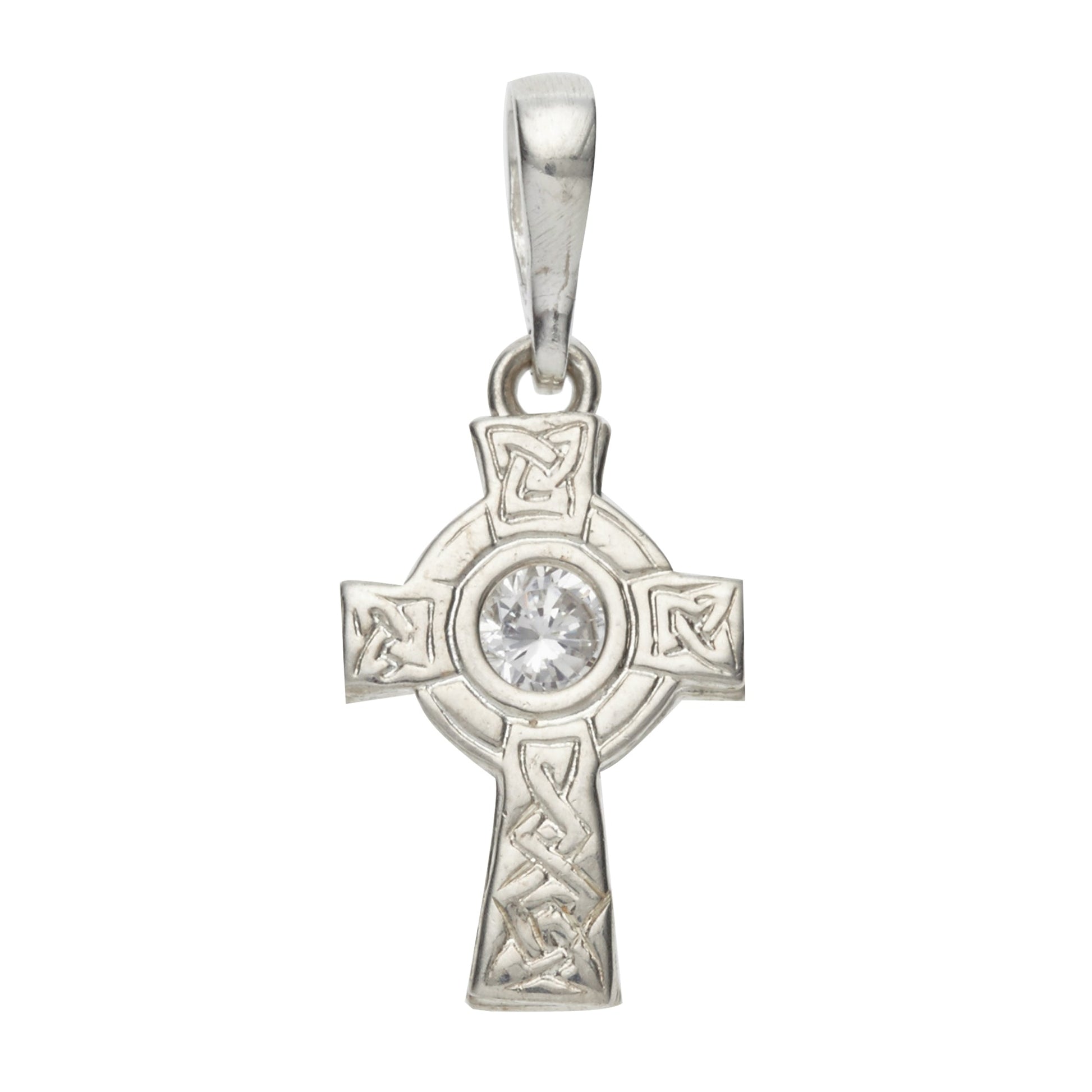 Presenting the exquisite Small Celtic Cross Cz Centre measuring 16mm, crafted with sophistication and grace.